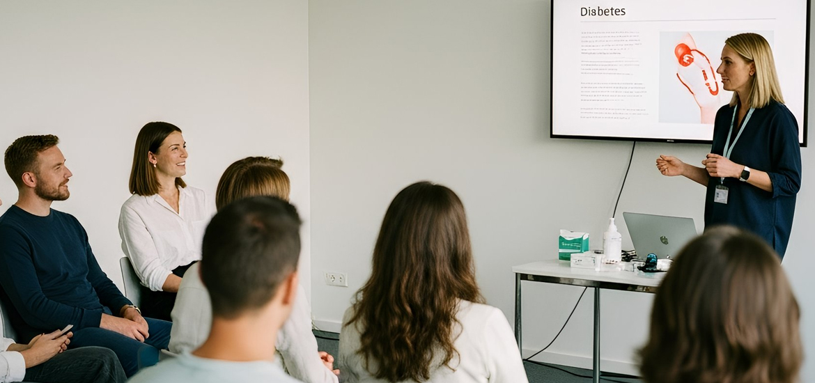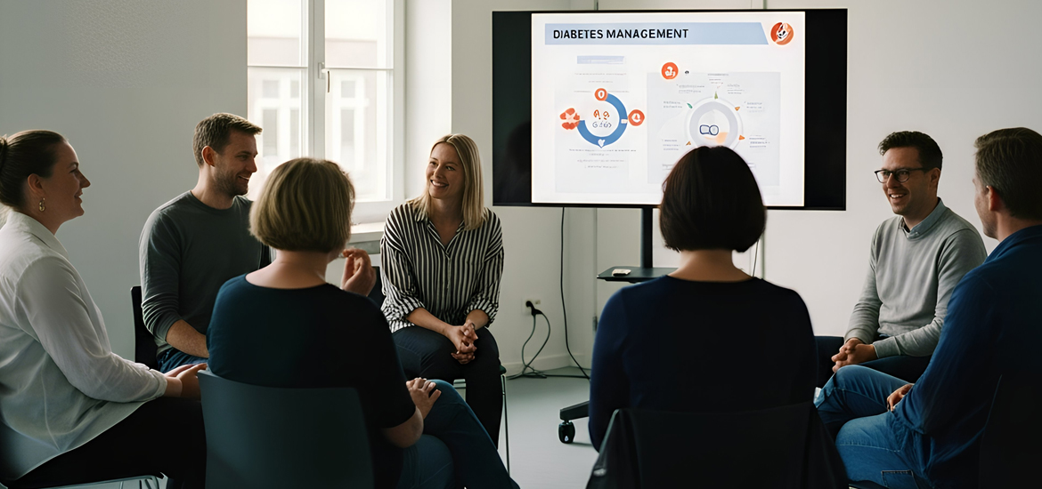 Dieses Seminar vermittelt Menschen mit Typ-2-Diabetes umfassendes Wissen über Ernährung, Bewegung und Medikation für ein sicheres und gesundes Leben.